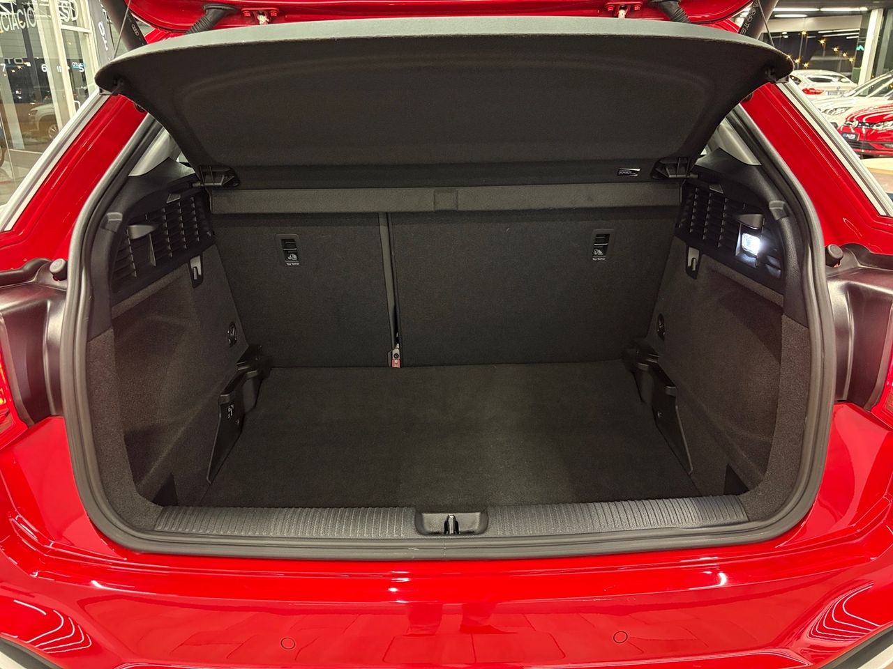 El interior combina elegancia y tecnología, con asientos deportivos que proporcionan un excelente soporte lateral. Entre su equipamiento destacan el aire acondicionado bizona, sensores de aparcamiento traseros, control de crucero y sistema de arranque/parada automático para optimizar el consumo.